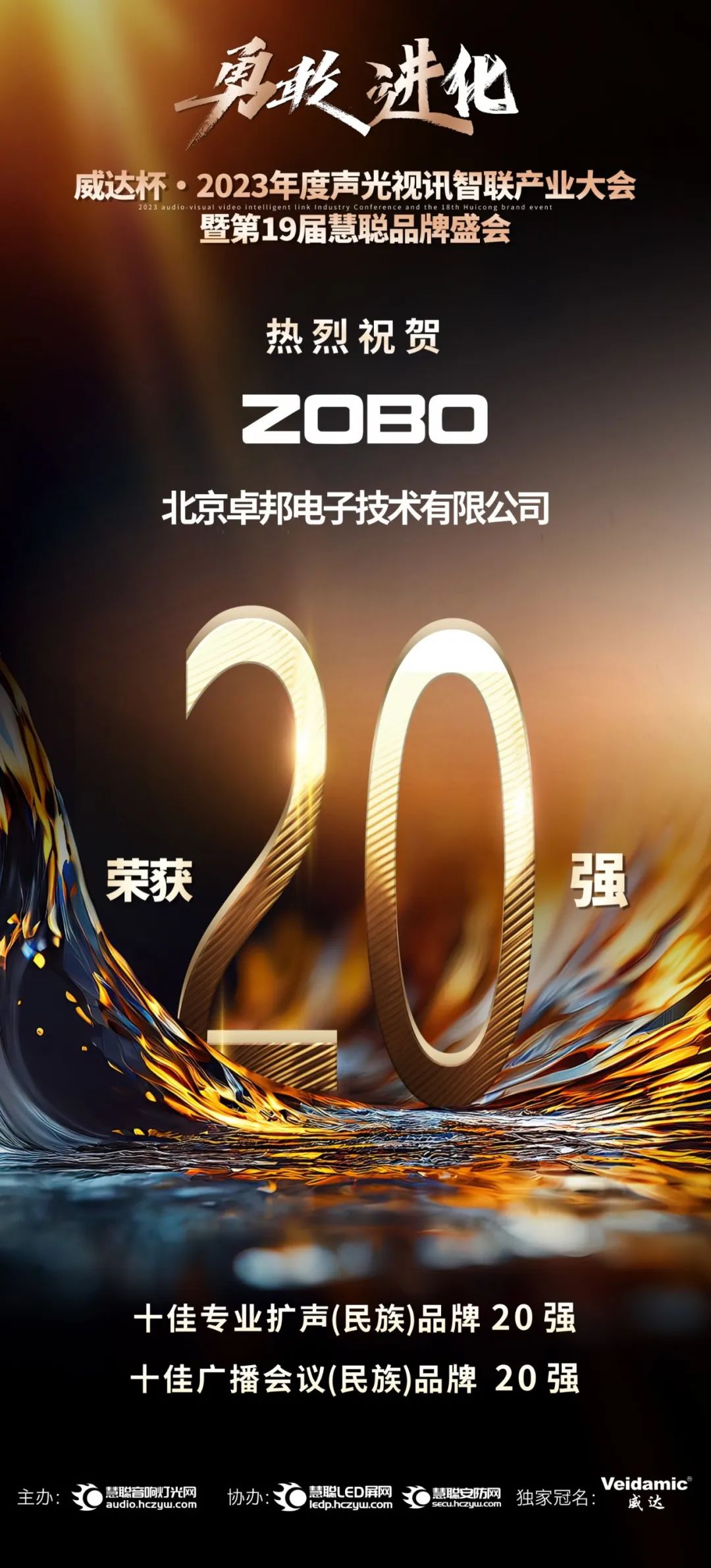 重磅揭曉!ZOBO卓邦旗下ZOBO品牌晉級2023聲光視訊行業(yè)20強品牌